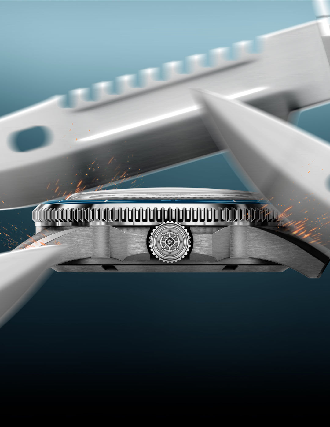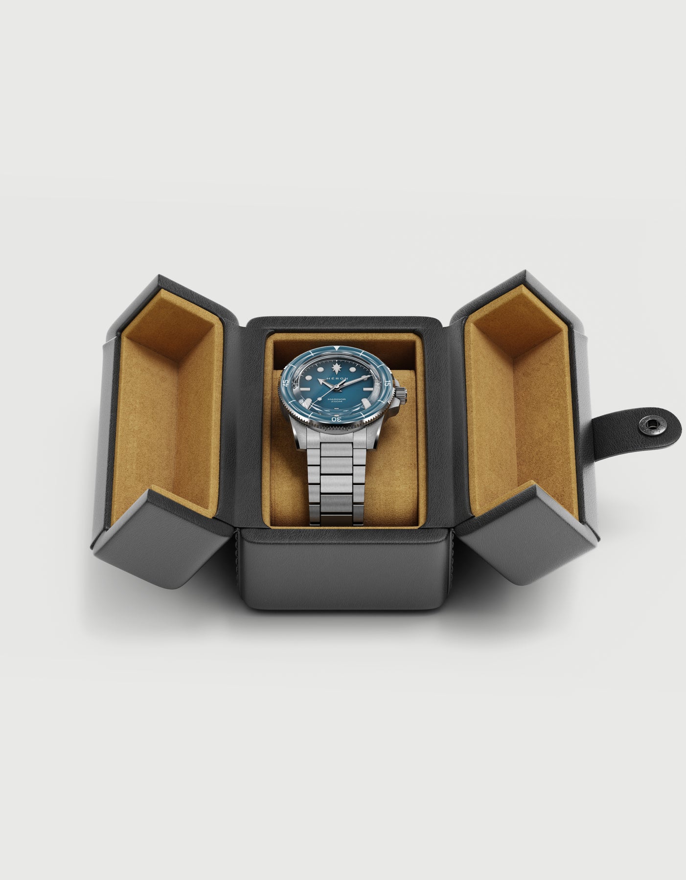 The Marinor draws inspiration from the boxed acrylic crystals and Bakelite bezels of mid-century dive watches, known for their depth and visual presence. Rather than reproducing those materials, the Marinor reinterprets them in sapphire — chosen for its exceptional scratch resistance and durability.
