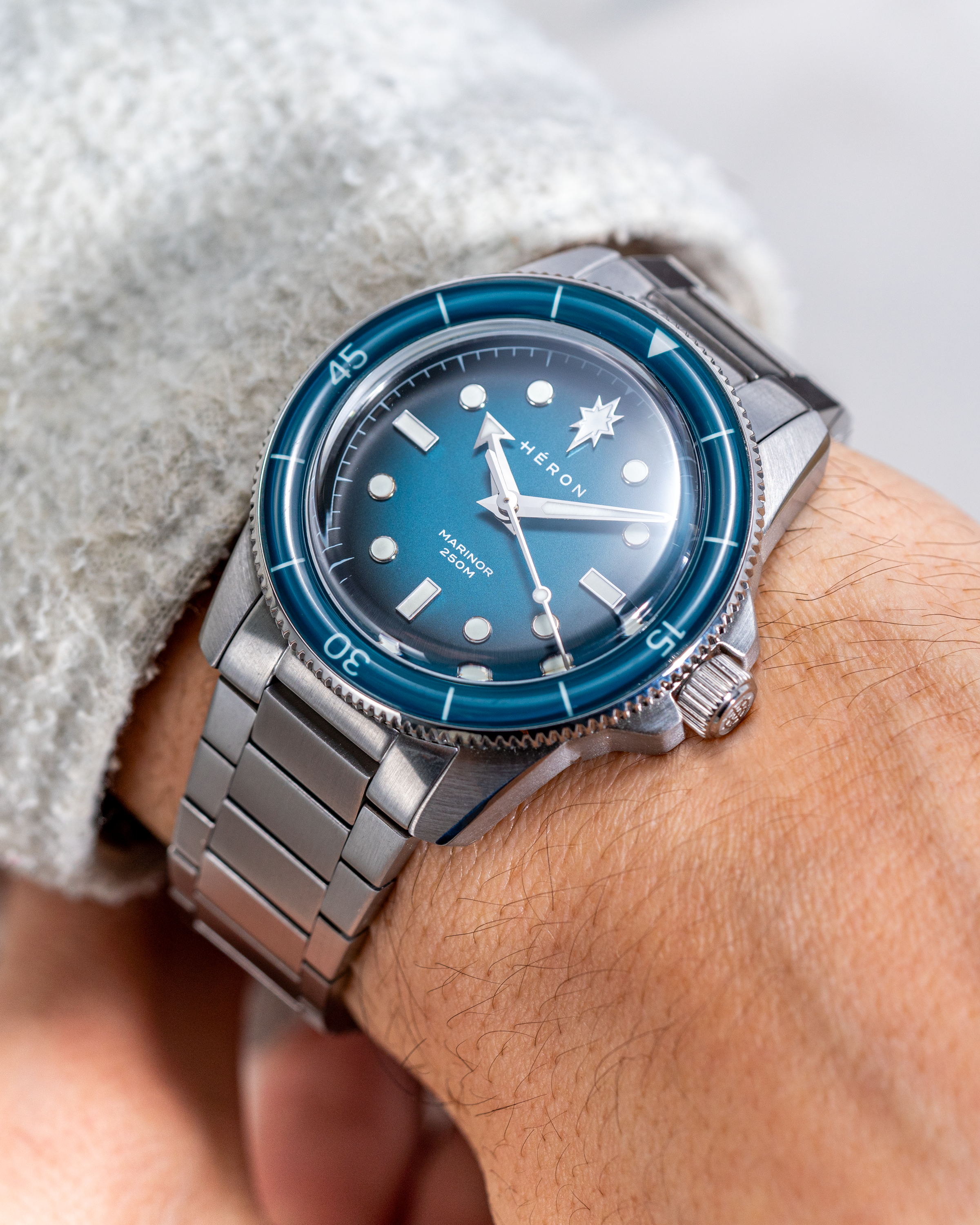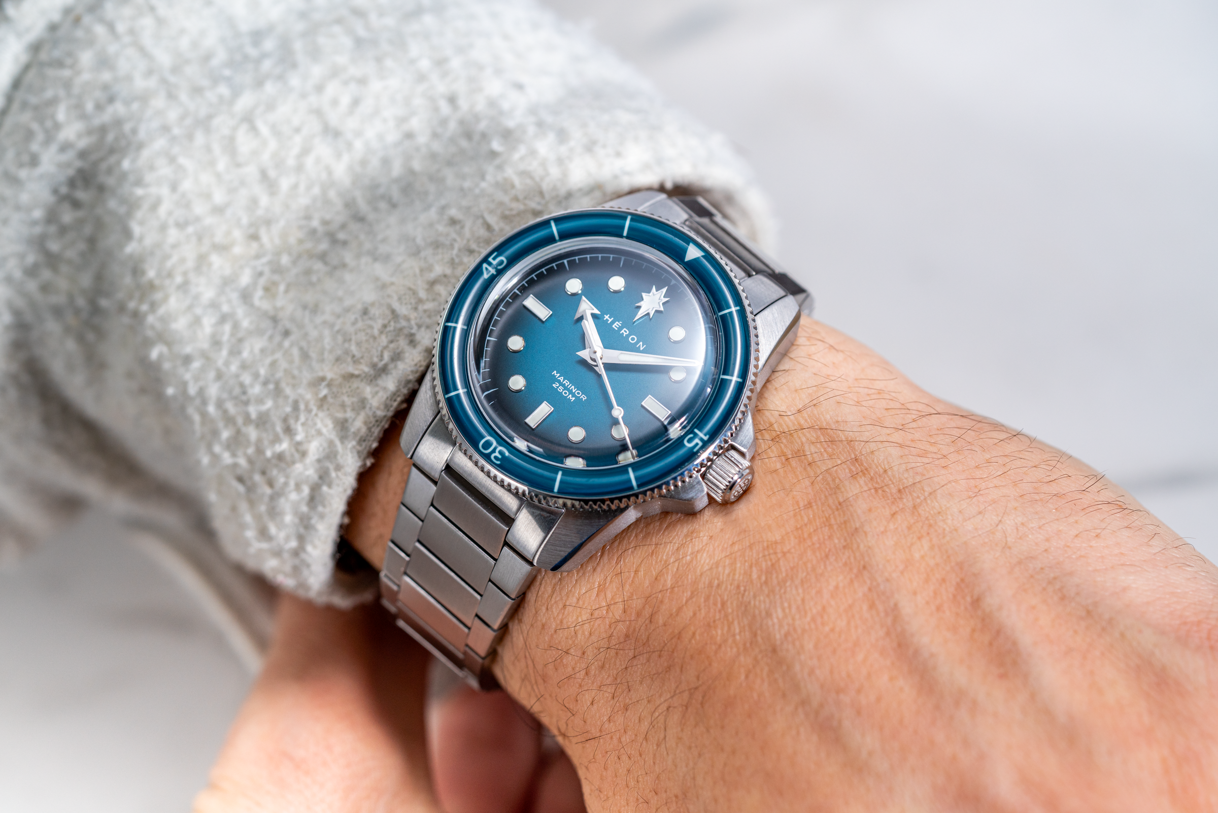 The dial layout reflects this influence. On early dive watches, the prominent marker at 12 o’clock helped divers instantly read the time underwater. For sailors, the North Star was the fixed reference used to navigate at sea. The Marinor brings these two ideas together with its North Star marker at 12, linking dive-watch function with maritime symbolism.