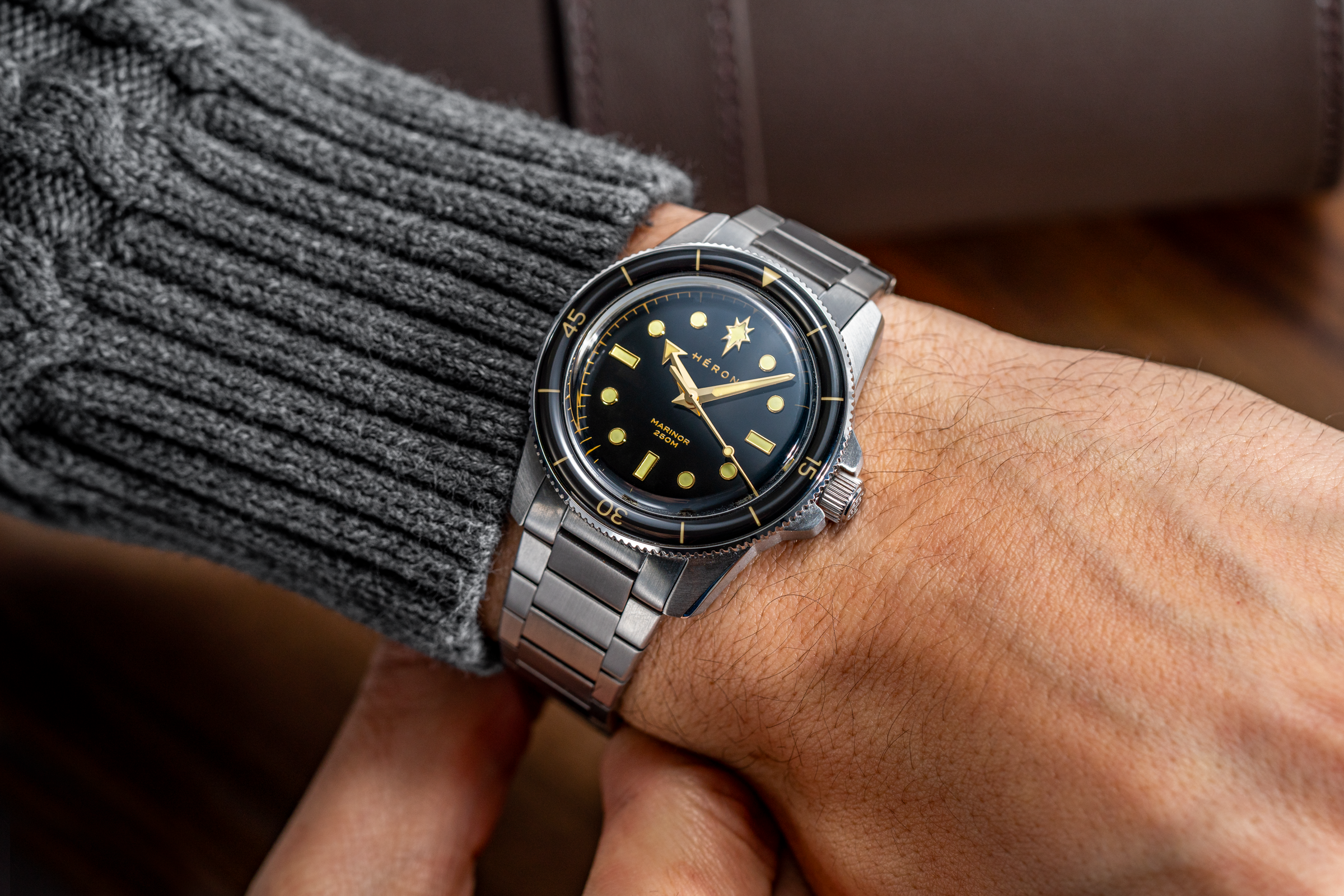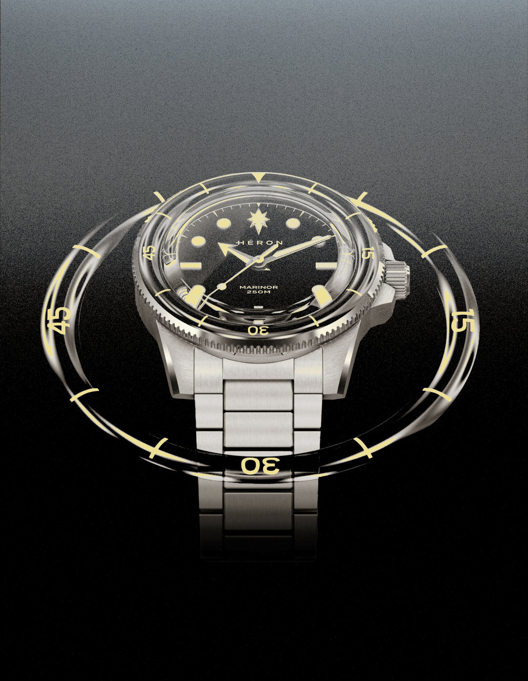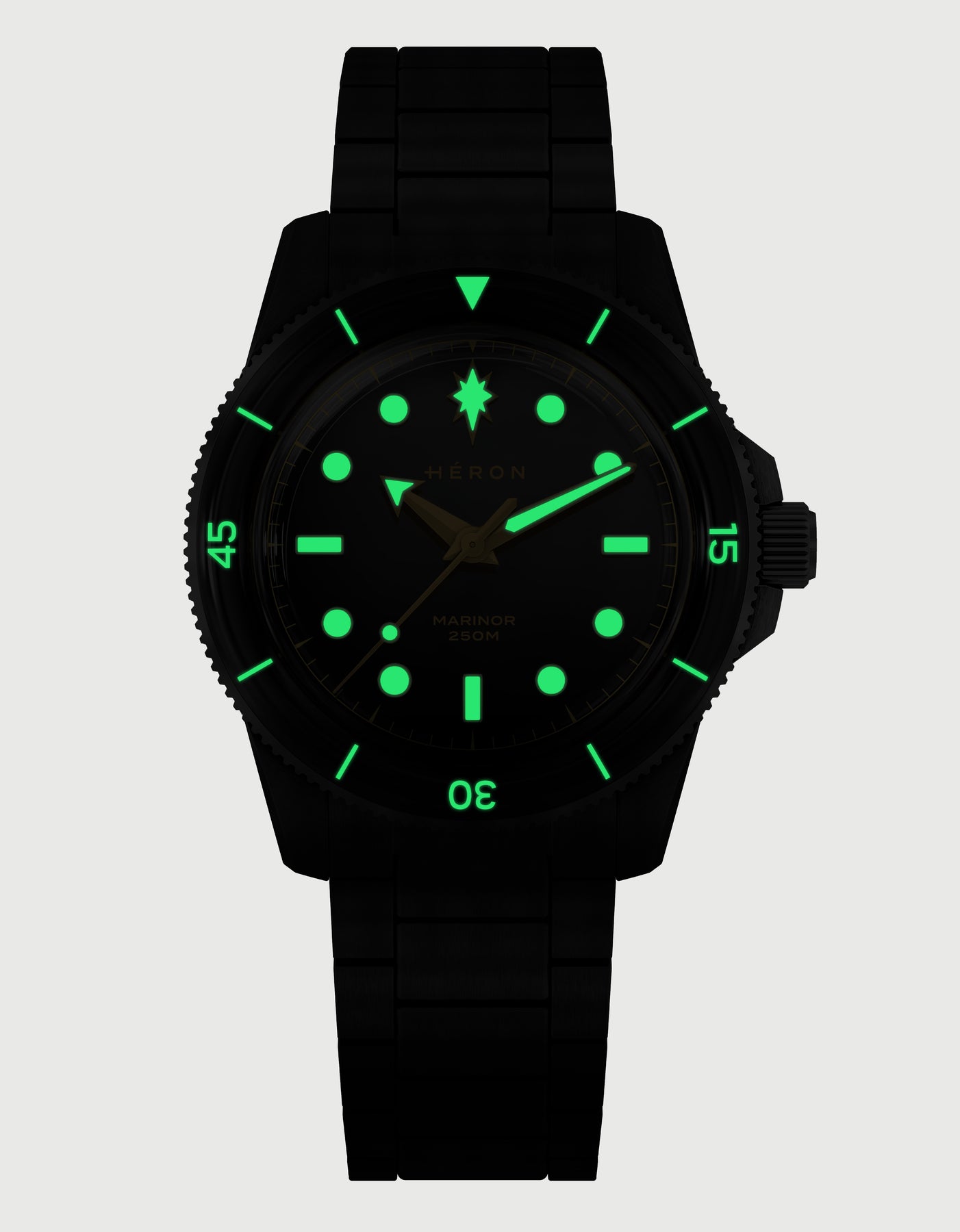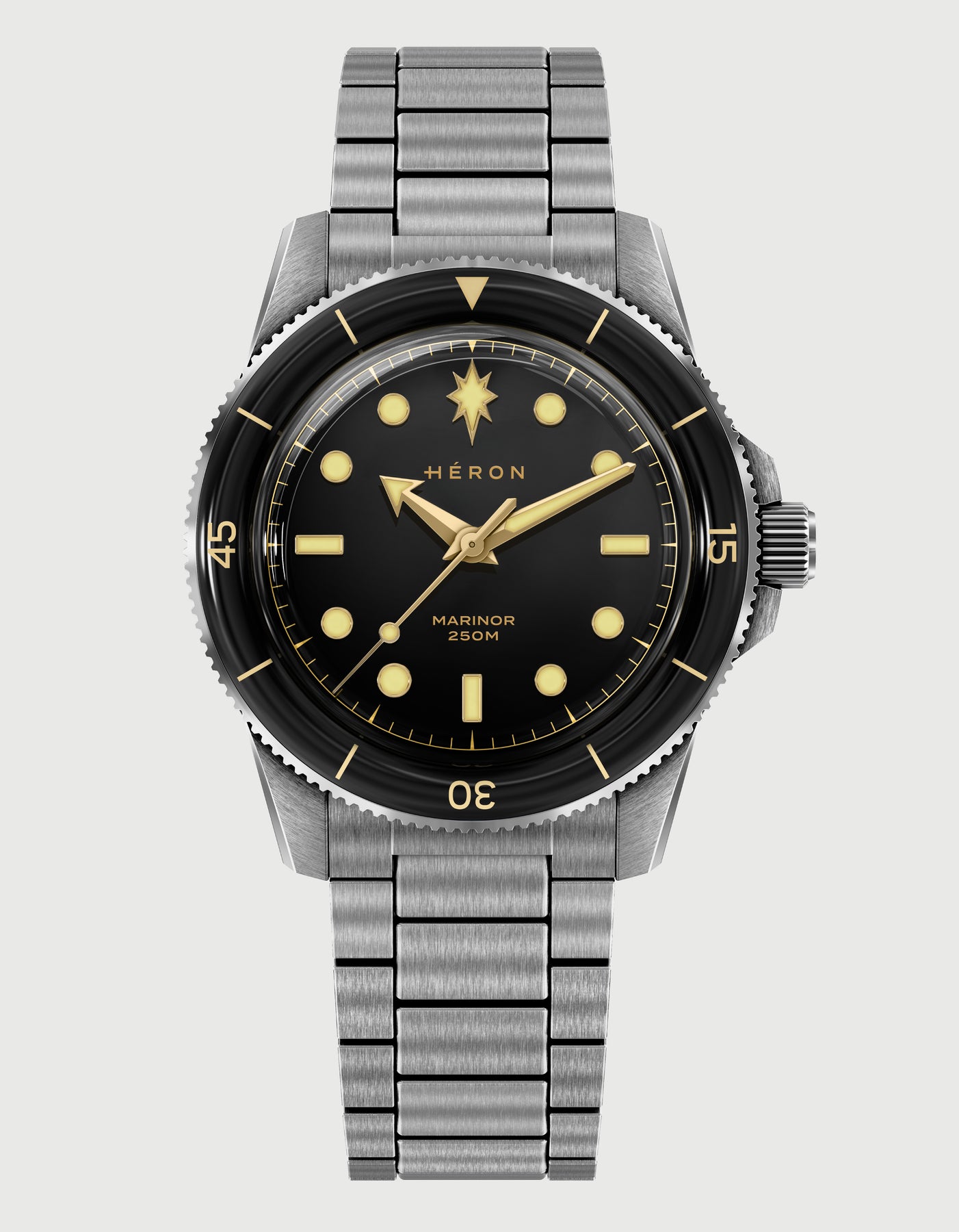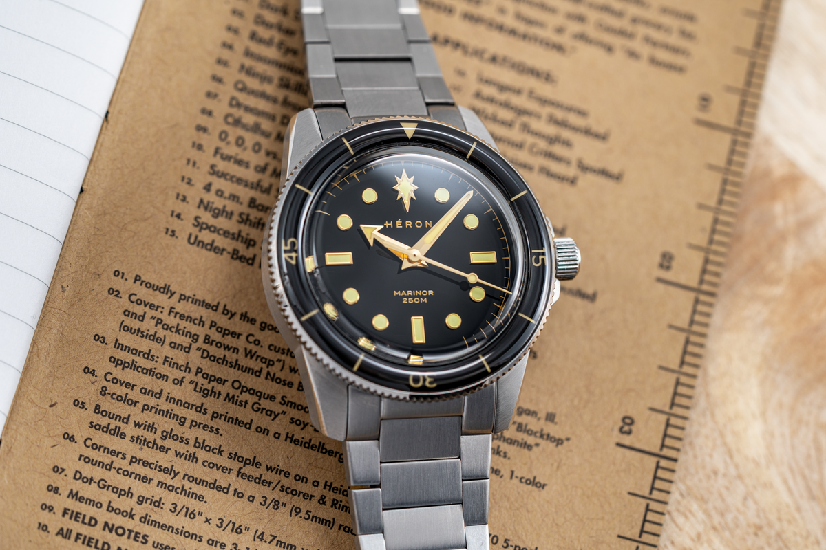 The dial layout reflects this influence. On early dive watches, the prominent marker at 12 o’clock helped divers instantly read the time underwater. For sailors, the North Star was the fixed reference used to navigate at sea. The Marinor brings these two ideas together with its North Star marker at 12, linking dive-watch function with maritime symbolism.