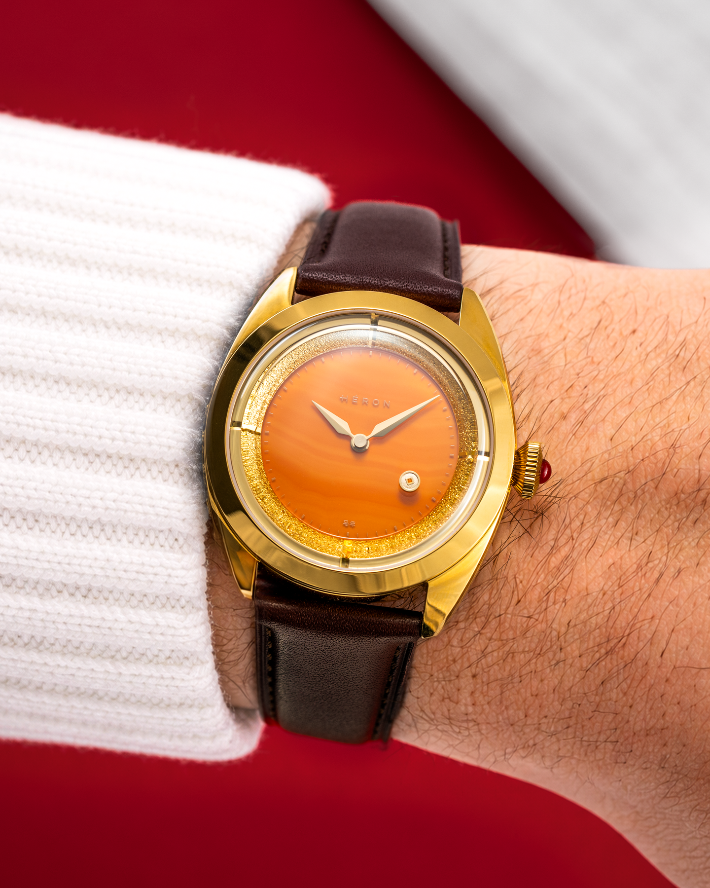 To ensure the Mirabel had a strap worthy of a true dress watch, we sourced a premium Baranil leather strap, crafted to Héron’s exact specifications. Every detail was carefully considered to complement the elegance and refinement of the Mirabel, resulting in a strap that is both luxurious and durable.